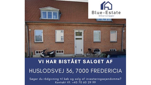 Vi har hos Blue-Estate netop bistået salget af denne ejendom på Huslodsvej 36, 7000 Fredericia. Vi ønsker både sælger og køber tillykke med handlen.