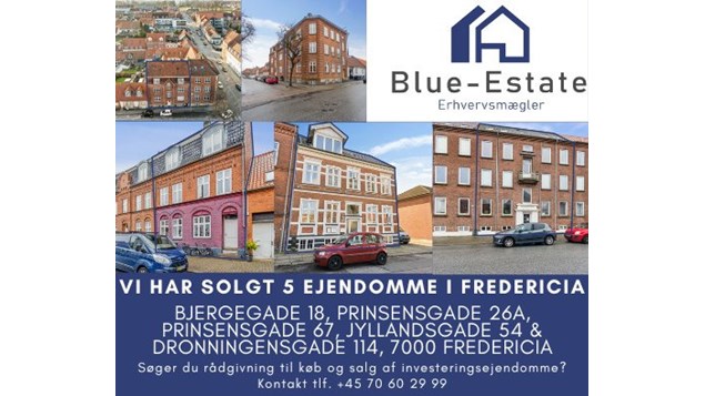 Vi er stolte over at meddele, at Blue-Estate i samarbejde med Lillebælt Erhverv har solgt en imponerende ejendomsportefølje bestående af 5 boligudlejningsejendomme i Fredericia.