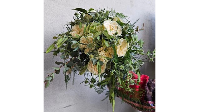 Brudeparret ønskede tidsler og lyse roser og lidt vild i udtrykket. Vi ønsker brudeparret hjertelig tillykke med kærligheden