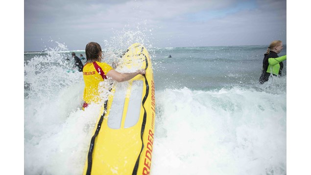 En af livredderne observerer en mand 200 meter fra land, som giver det skarpe signal. Livredderen tager sit board og padler ud til den nødstedte, som fortæller, at han har fået krampe og ikke selv kan komme ind til land. Livredderen får manden til at holde fast i boardet og hjælper ham stille og roligt ind til land.