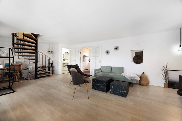 Stue og køkken på Jens Thuesens Vej 7 // Foto: Ejendomsmægler Mike Andersen