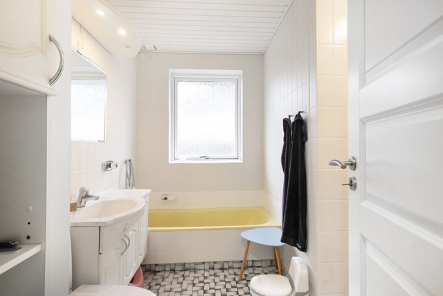 Spisestue og et af badeværelserne på Jens Thuesens Vej 7 // Foto: Ejendomsmægler Mike Andersen
