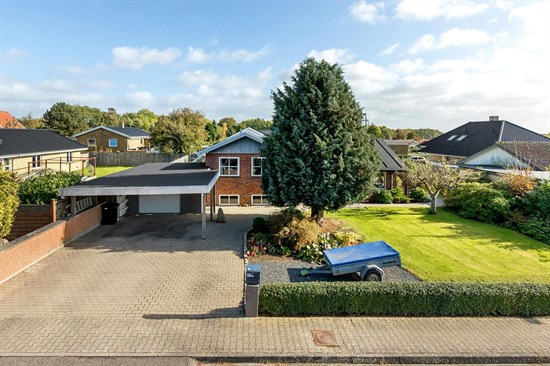 Villaen er placeret på en grund, der strækker sig over 796 kvadratmeter og er tilgængelig til en pris på 2.695.000 DKK.