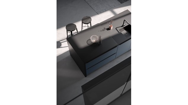 Den forskydelige bordplade giver en ekstra arbejdsplads, du skubber bare til bordpladen, så dukker kogepladen frem og et par ekstra spisepladser.