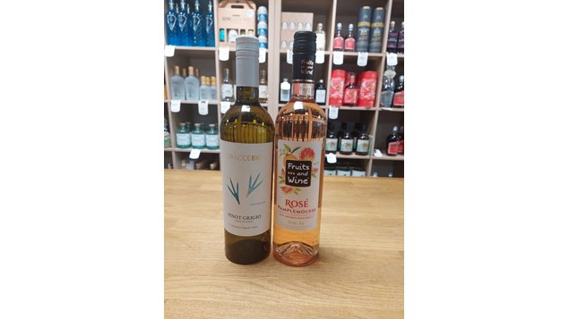 Vælg mellem 1 fl. rosé eller 1 fl. hvid Pinot Grigio begge vine har en frisk, lidt sød og frugtig smag