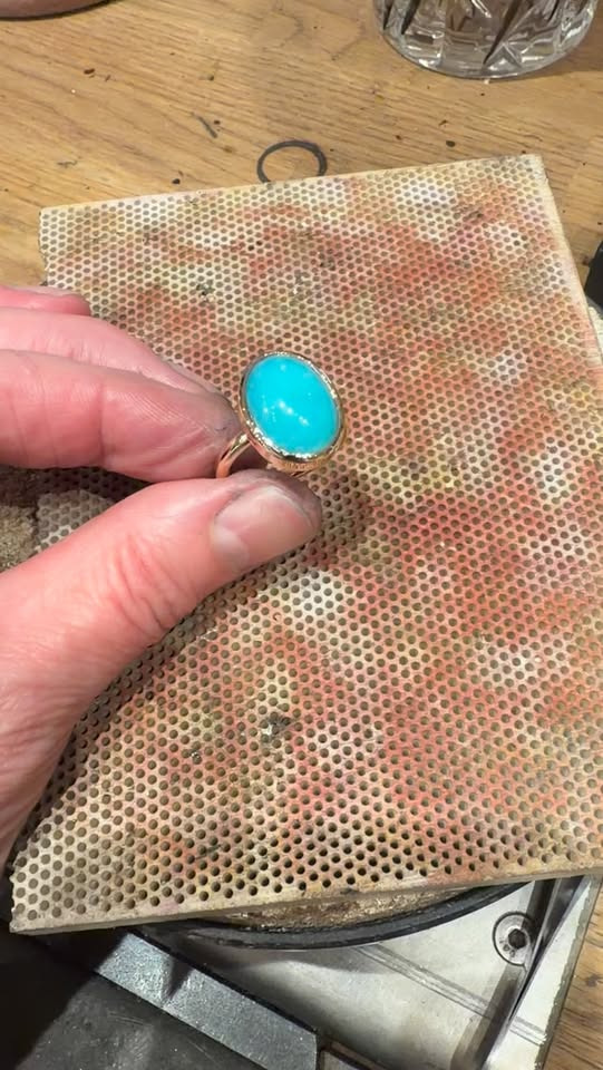 Denne bedårende ring i 18 kt guld og med en meget stor og smuk amazonit, blev en meget heldig kvinde forkælet med i påsken