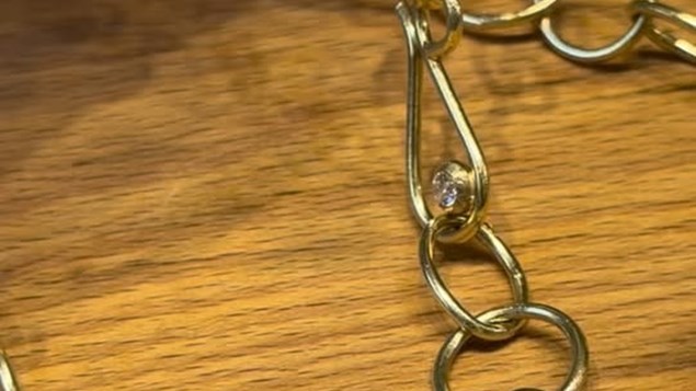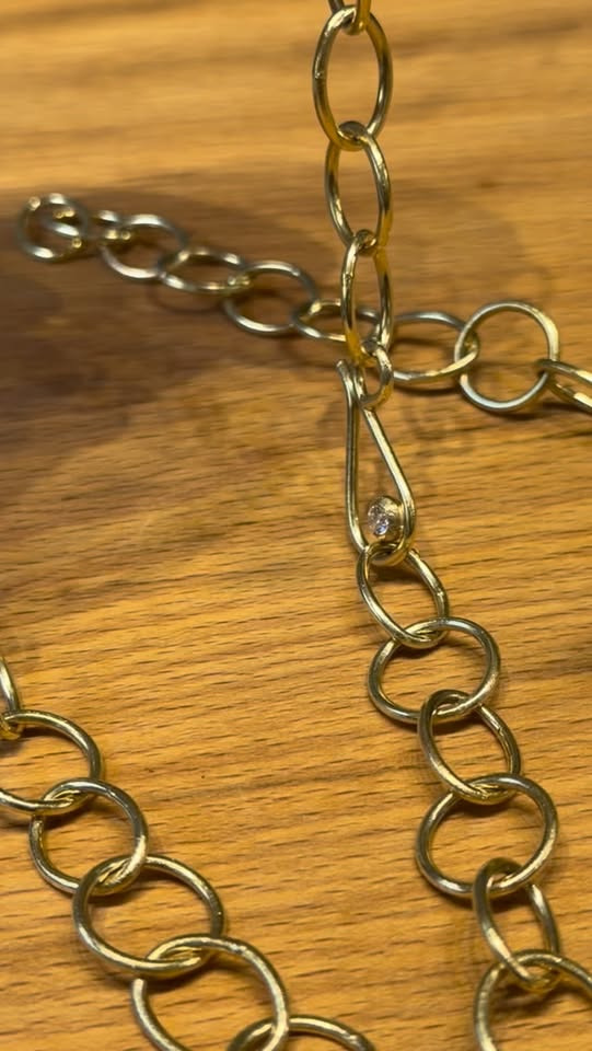Meget smukt halscollie med matchene armlænke i 14 kt guld og med to store diamanter.