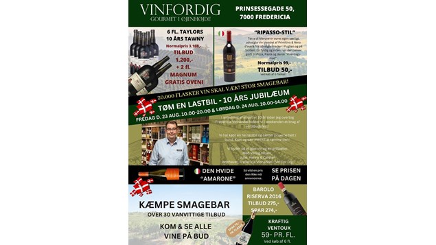 Kæmpe vinsalg: Fredericia Vinhandel holder lagersalg og fejrer 10-års jubilæum
