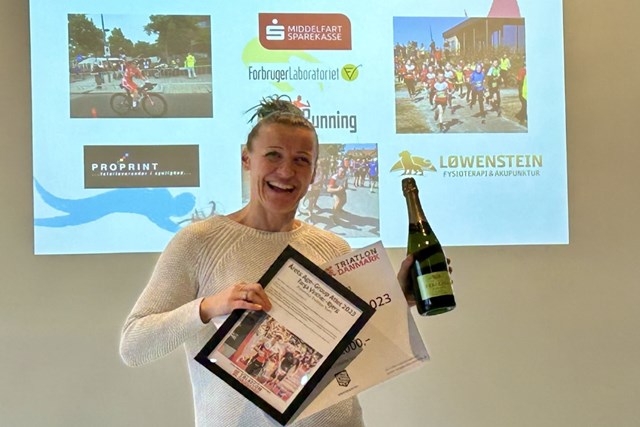 Tanja Vinter-Bjerg, med prisen for “Årets Triatlet” ved det nationale forbund - Triathlon Danmark (Foto: Privat)
