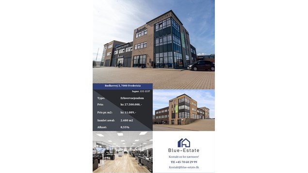Kontakt Blue-Estate Erhvervsmægler på tlf. 70 60 29 99 eller kontakt@blue-estate.dk for mere information eller for at aftale en fremvisning.
