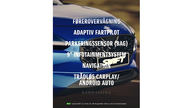 Få mere for pengene med Suzuki Swift! Fantastisk benzinøkonomi, stilfuldt design og masser af fedt udstyr – alt sammen til en månedlig ydelse fra kun 2.895 kr. og en udbetaling på 9.995 kr.
